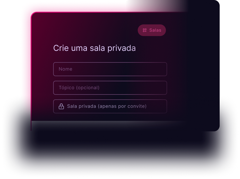 Oferece a flexibilidade de criar e participar em salas de conversa onde múltiplos participantes podem colaborar em discussões públicas ou privadas.